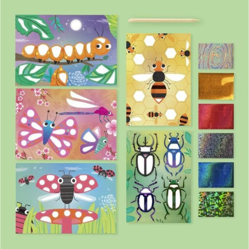 Ten zestaw Foil Art pozwala dzieciom odkrywać świat błyszczących owadów – od chrząszczy, przez pszczoły, po biedronki. Maluchy mogą przyczepiać holograficzne folie na specjalnie przygotowane sekcje z klejem, tworząc własne, unikalne projekty. Zabawa rozwija precyzję ruchów, koordynację ręka-oko i kreatywność, a przy tym dostarcza mnóstwo połyskującej frajdy!