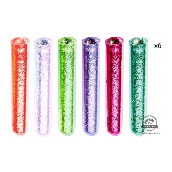 - 6 pojemniczków z kolorowym brokatem,