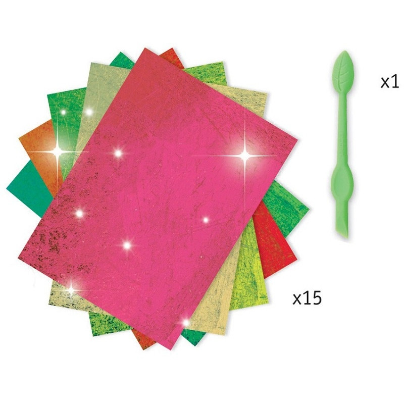 - 4 plansze z obrazkami, 15 kolorowych metalizowanych arkuszy,