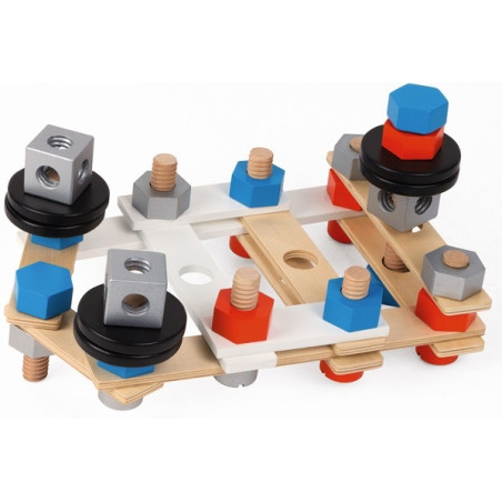 Skręcając ze sobą śrubki, listewki, kółka i nakrętki,