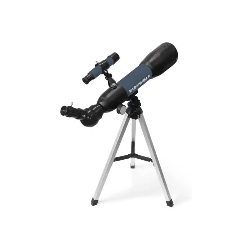 Urządzenie zawiera finderscope - szukacz, który ułatwia celowanie dzięki krótszej ogniskowej. Po znalezieniu interesującego obiektu, można dostosować teleskop dla jeszcze bardziej szczegółowej obserwacji. KIDYTELESCOPE oferuje średnicę 50 mm oraz ogniskową 360 mm, dzięki czemu zapewnia wyraźny i klarowny obraz. W zestawie znajdują się dwa okulary: 20 mm, umożliwiający powiększenie x18, oraz 6 mm, zapewniający powiększenie x60. Dodatkowo soczewka Barlowa potraja powiększenie, pozwalając dostrzec najdrobniejsze detale. Pryzmat diagonalny 45° poprawia komfort obserwacji, oferując możliwość oglądania obrazu w naturalnym kierunku.
