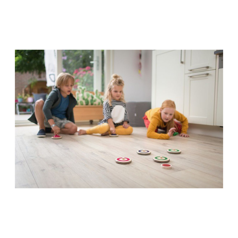 - 4 drewniane nakładki do puszczania kamieni curling oraz drewniany krążek