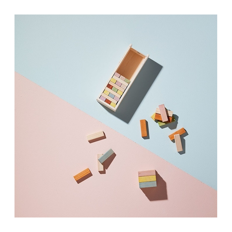 Każdy klocek pomalowany jest lakierem na bazie wody, więc każdy z nich ma swój niepowtarzalny wygląd.