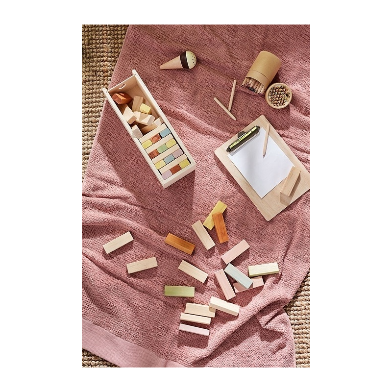 - 51 drewnianych klocków oraz drewniane pudełko do przechowywania klocków