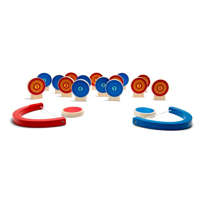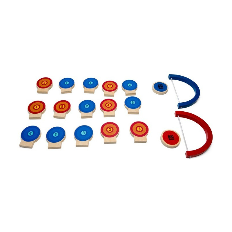 ZESTAW ZAWIERA: 15 tarcz z punktami, dwa łuki i dwa krążki