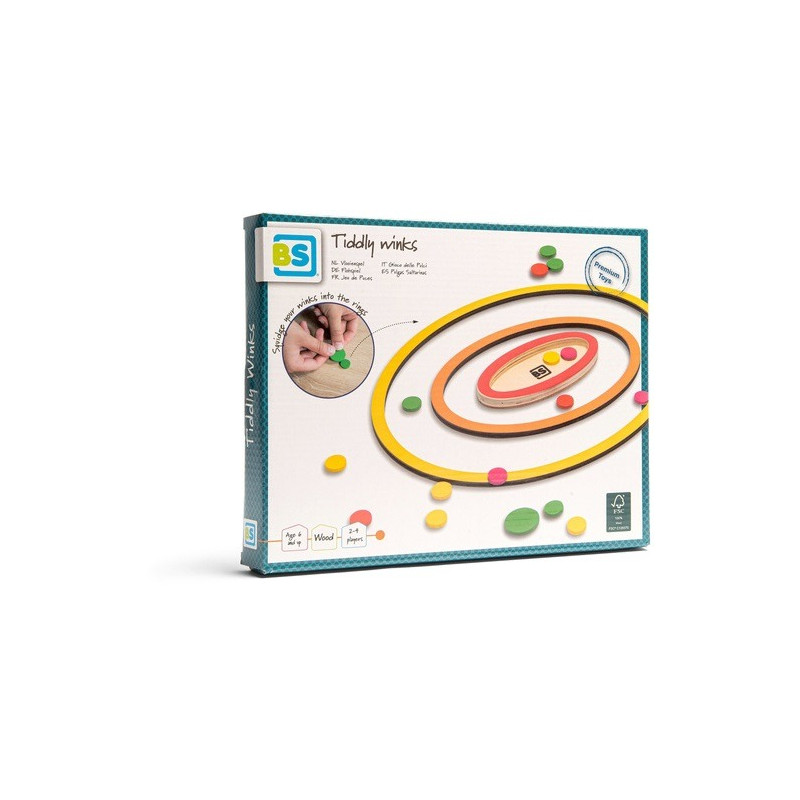 - 4 drewniane krążki do pstrykania i 20 drewnianych pchełek, bawełniany worek do przechowywania gry