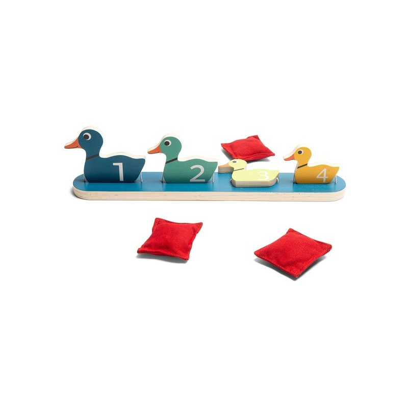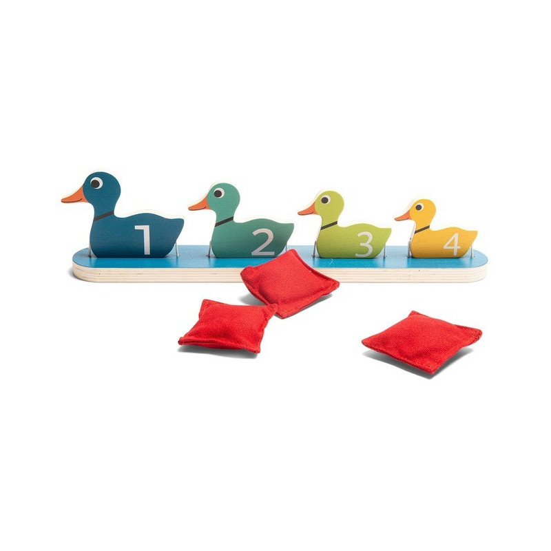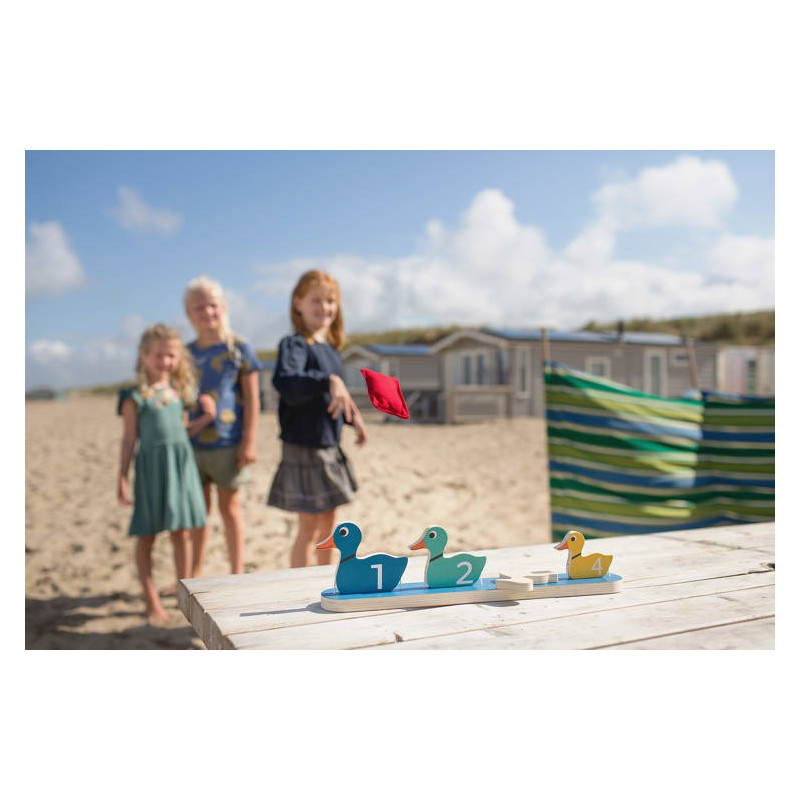 - dużą i długą drewnianą bazę z 4 drewnianymi kaczkami oraz komplet 3 woreczków