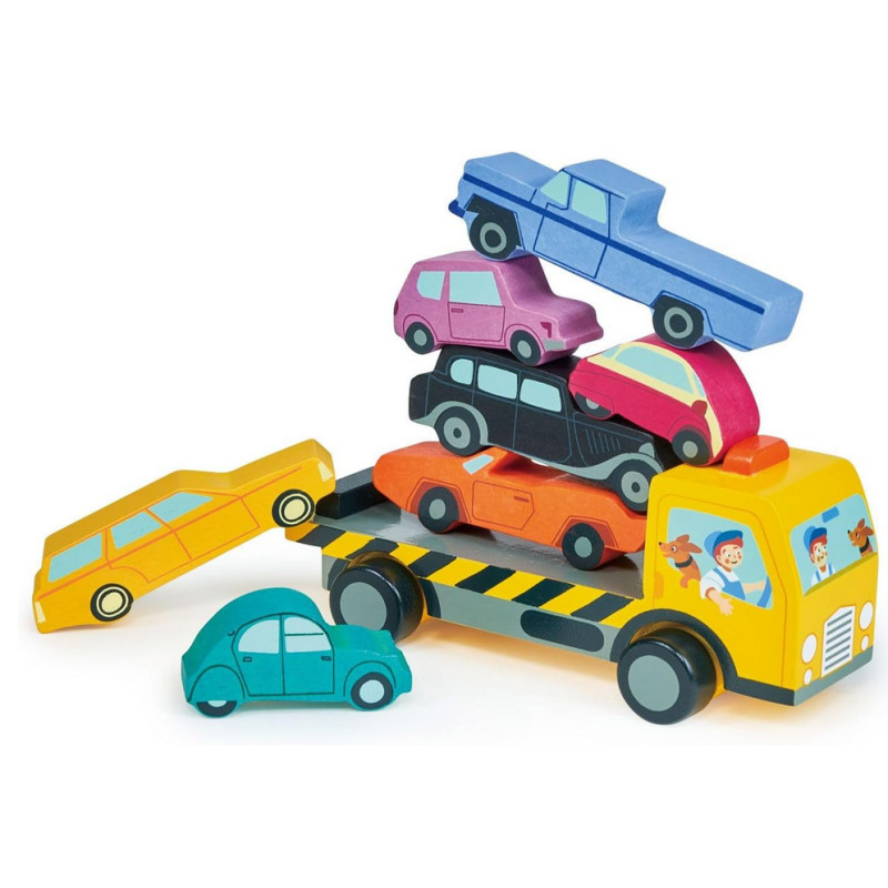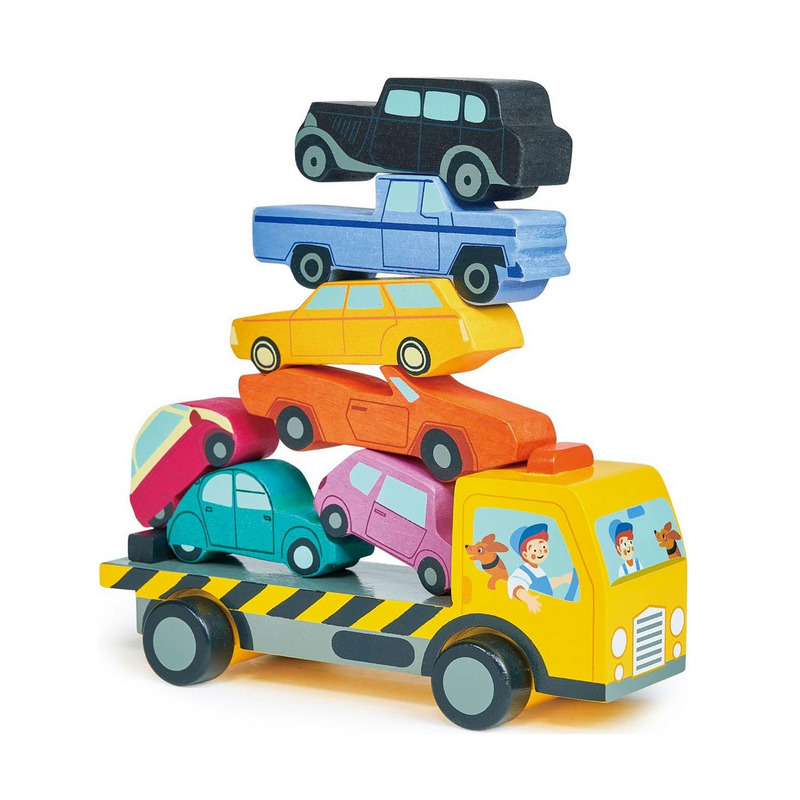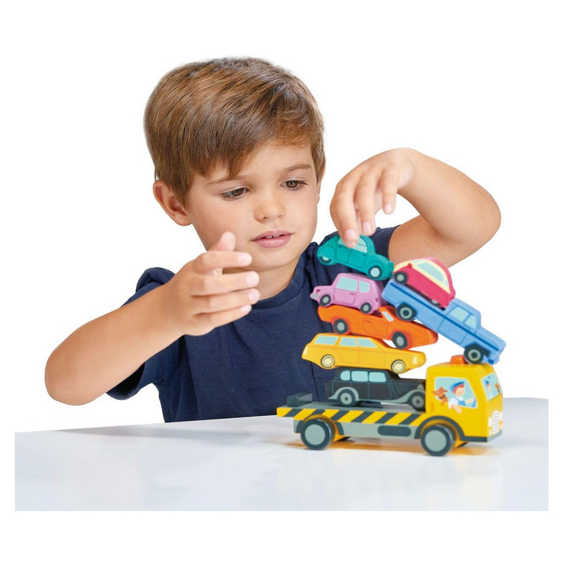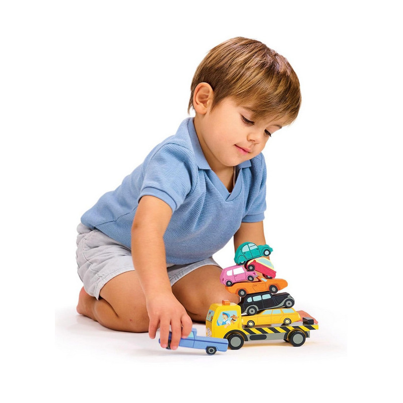 CIĘŻARÓWKA Z AUTKAMI drewniana gra zręcznościowa Tender Leaf Toys 18 msc+